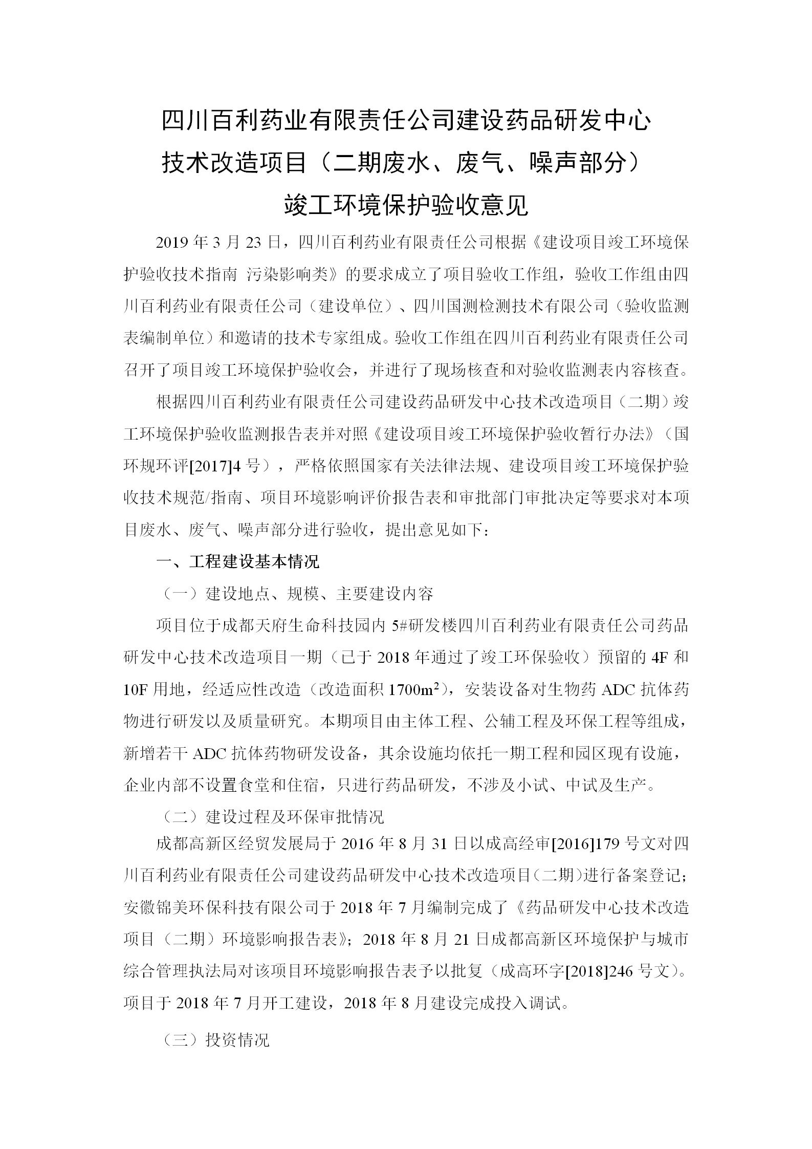 根据《国务院关于建设项目竣工环境保护管理条例的决定》以及环保部《建设项目竣工环境保护验收暂行办法》的公告(国环规环评[2017]4号)现将《四川昆明任波保洁清洗服务有限公司有限责任公司药品研发中心技术改造项目(二期)竣工环保验收监测报告》及验收意见公示如下: